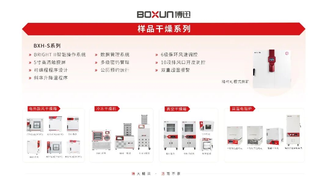 样品干燥系列主要应用场景包括:①生物制药、食品、检验检测、检验检疫、农林牧渔、环境保护、科学研究等实验室各种样本、器皿及实验器材的干燥和灭菌;②工业产品干燥或温度适应性实验,模拟提供实验所需的温度环境,已在电气、仪器仪表、电子元器件、高分子材料、塑胶、航空、机械、化工等领域的干燥或温度适应性实验得到了广泛应用。