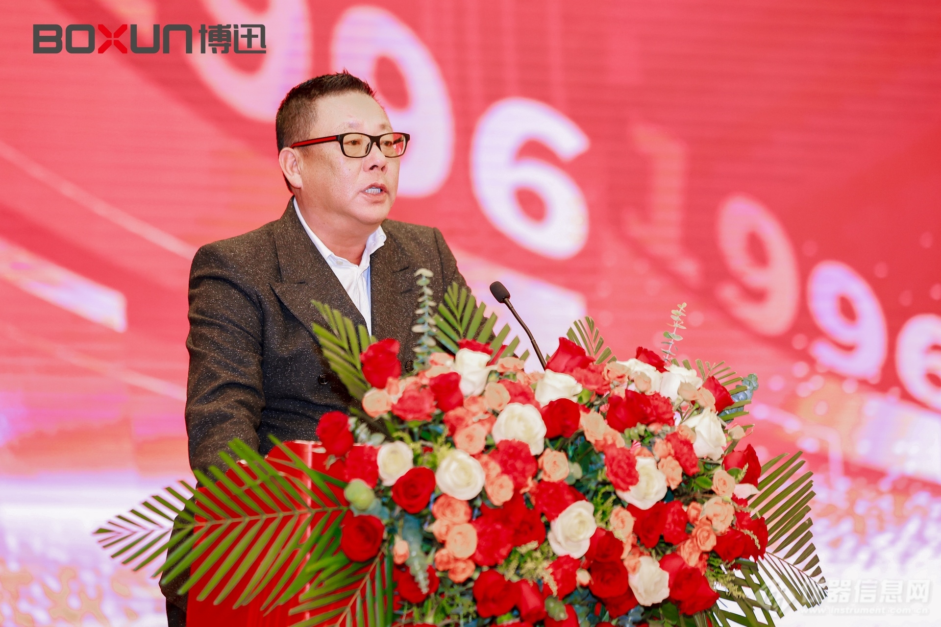 庆典伊始,博迅生物董事长吕明杰发表致辞,代表公司向各位来宾表示热烈欢迎,并对长期以来关心与支持博迅生物发展的社会各界同仁致以诚挚感谢。回望三十载砥砺征程,公司从上海崇明农场的一间作坊起步,历经行业洗礼与市场考验,成长为专精特新、国家高新技术企业,再到成功登陆北交所。吕明杰感慨,三十年创业之路虽步履维艰,但博迅生物始终秉承“博大精深,迅而不紊”的发展理念,在稳扎稳打中持续前行。在他看来,博迅生物的发展离不开“感恩同行”。首先,感谢国家与时代发展的馈赠,为国产科学仪器设备生根发芽、茁壮成长提供了良好土壤,使博迅生物得以在进口品牌主导的市场环境中闯出一条自主之路。其次,特别感谢长期并肩作战的经销商伙伴,正是合作伙伴的坚定信赖与鼎力支持,让博迅生物的仪器设备走进更多用户单位。最后,吕明杰向博迅生物全体员工致以由衷感谢。他表示,博迅生物取得今日的发展成就,离不开每一位员工的无私奉献与不懈努力。展望未来,博迅生物将继续扎根主业,积极拥抱人工智能、自动化与数字化等新兴技术,以创新夯实产品根基,以服务回馈市场信赖。同时,还将借助资本力量拓展新赛道、整合资源,携手合作伙伴共同推动国产科学仪器产业行稳致远。